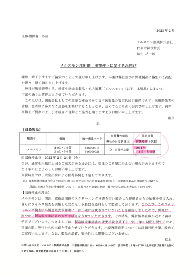 ワクチンは入荷が途絶えた時点で終了予定です。