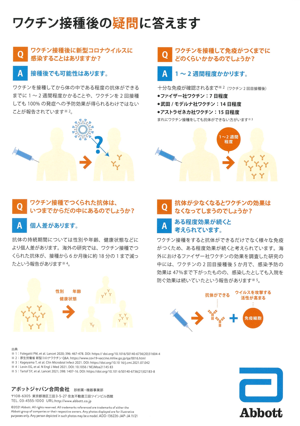 モデルナを敬遠している人、待っている間に感染しては意味がありません、抗体は当院のデータでも日々下がってきます(6ヶ月でかなり減少) 元々インフルエンザ予防接種もワクチンを打ってから2~4週間で抗体価が上昇して5から6ヶ月で効果が薄れるものでした。 この新型コロナワクチンも同じ様な動きをするのでしょうね!!
