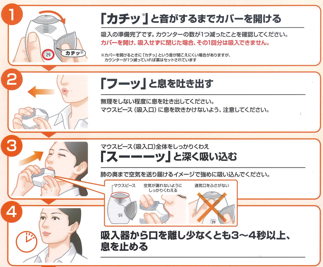 また、吸入前に水分で口中を湿らせておくと、吸入の苦みを和らげられるそうです。![]()