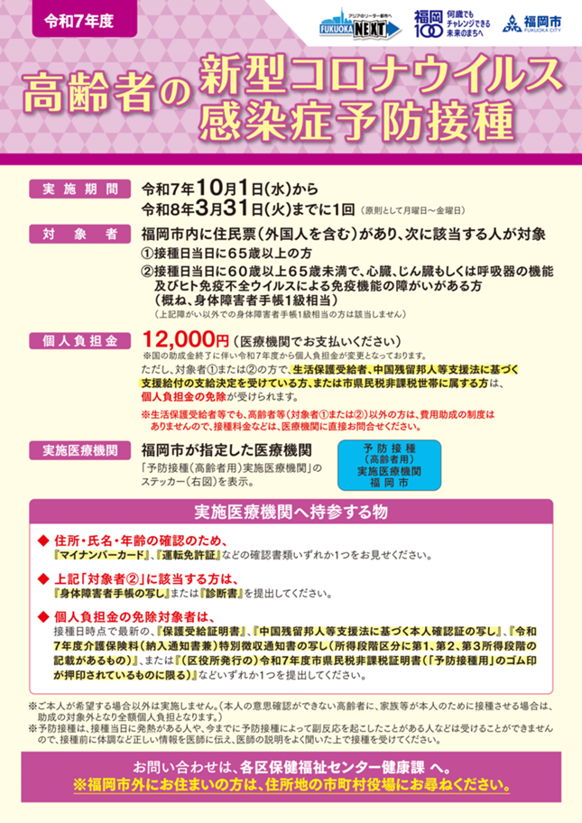 また、令和7年10月以降の新型コロナワクチン接種は、
