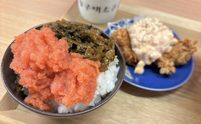 小ご飯も頼んだのですが明太子と辛子高菜が食べ放題だったので明太高菜丼にして食べちゃいました😋