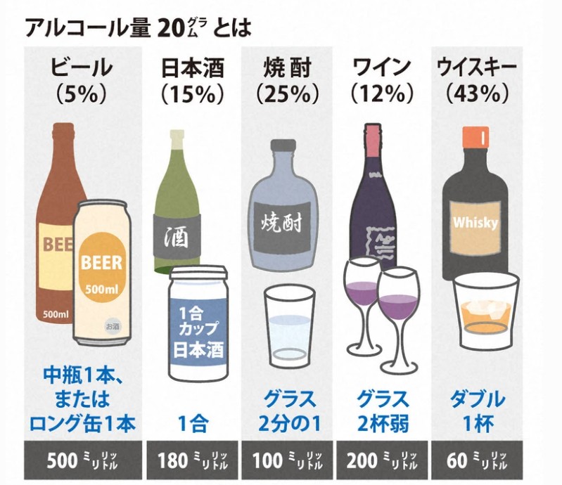 アルコール依存症にならないため、健康なアルコール量は1日20gまでと言われていますが 女性は少ない量でも肝臓に負担がかかるので 少ないに越したことはありませんよね。