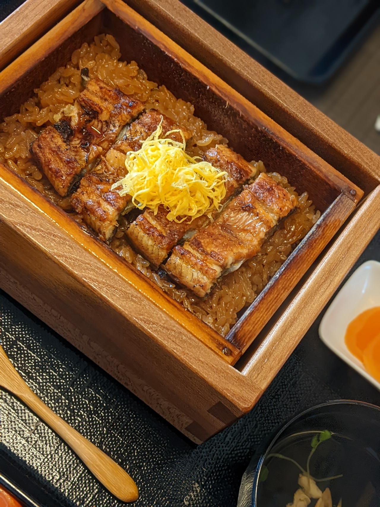 ↑鰻のセイロ蒸しを注文したら、肝吸いもついてきました😋