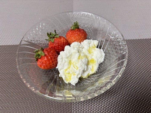 チーズにはオリーブオイルをかけて、いちごと一緒にいただきました🥰