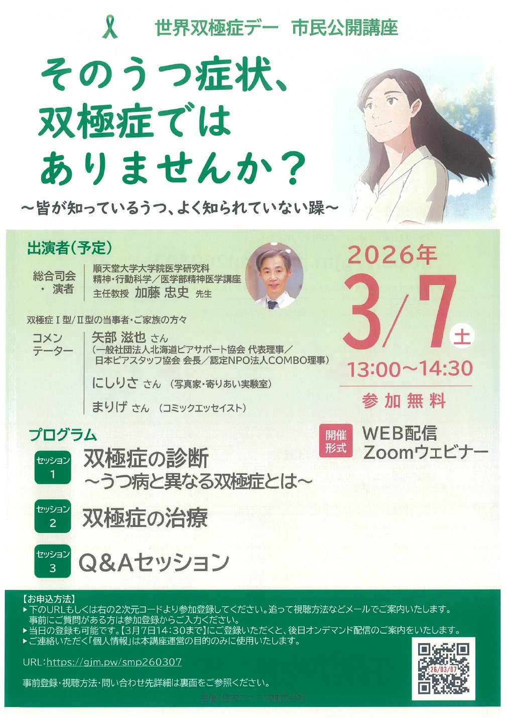 世界双極性障害デーをきっかけに、この病気への理解が広がり、必要な方が早期に医療につながる社会になることを願っています。