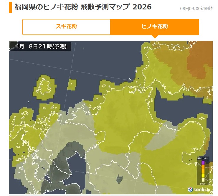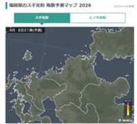 福岡県のヒノキ花粉 飛散予測マップ 2026