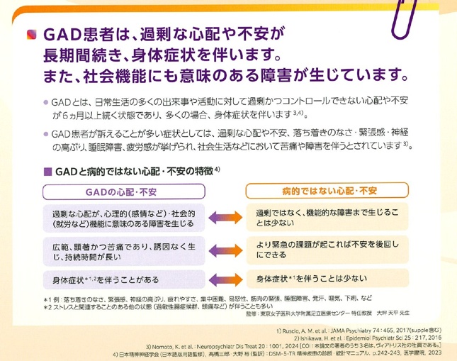 長期間続く過剰な心配や不安が、睡眠障害や疲労感など身体症状に現れ社会生活にも障害を伴うとされています。