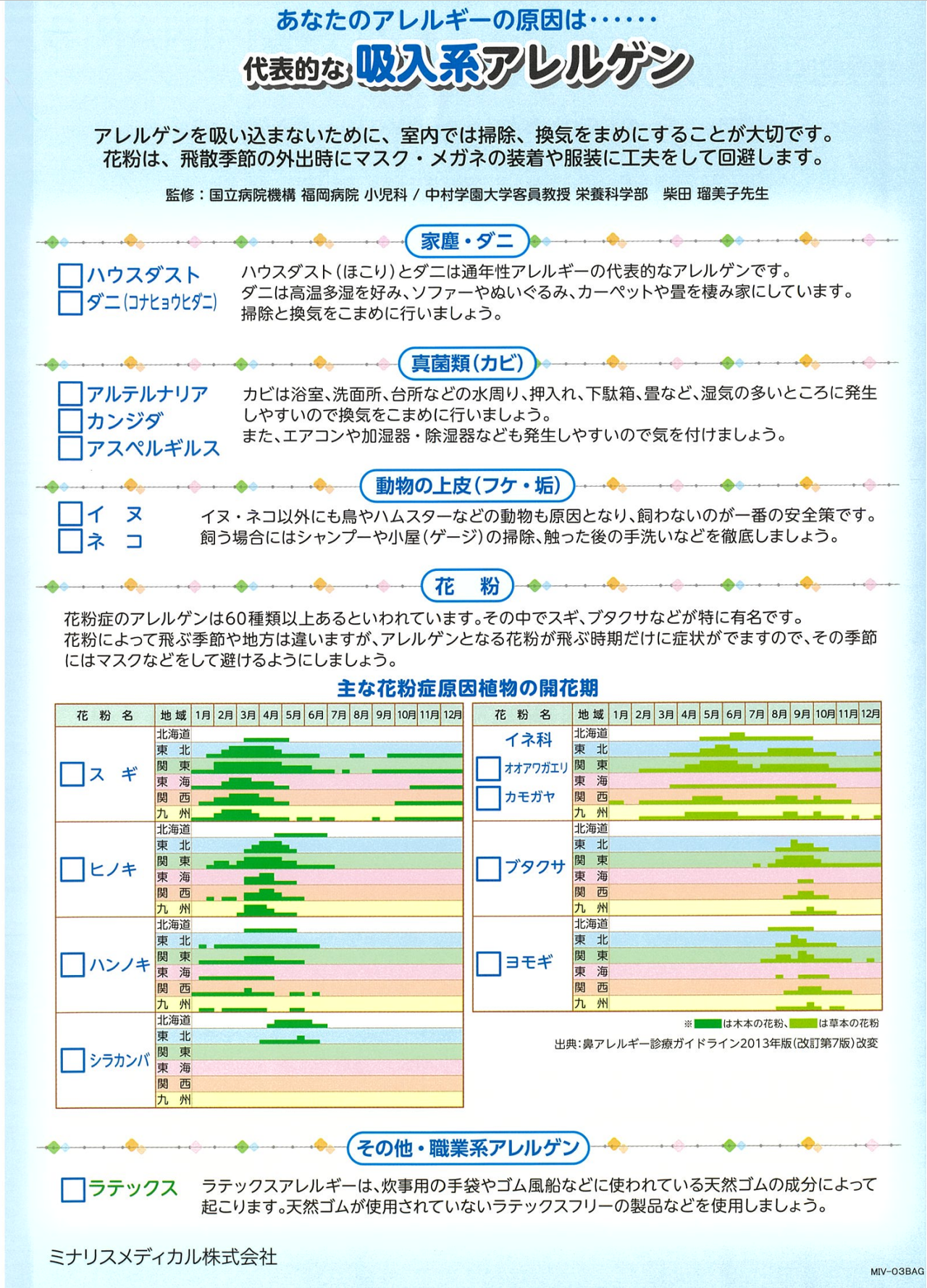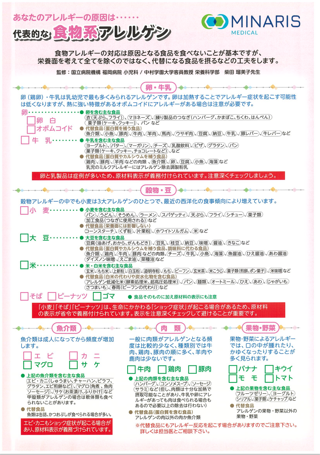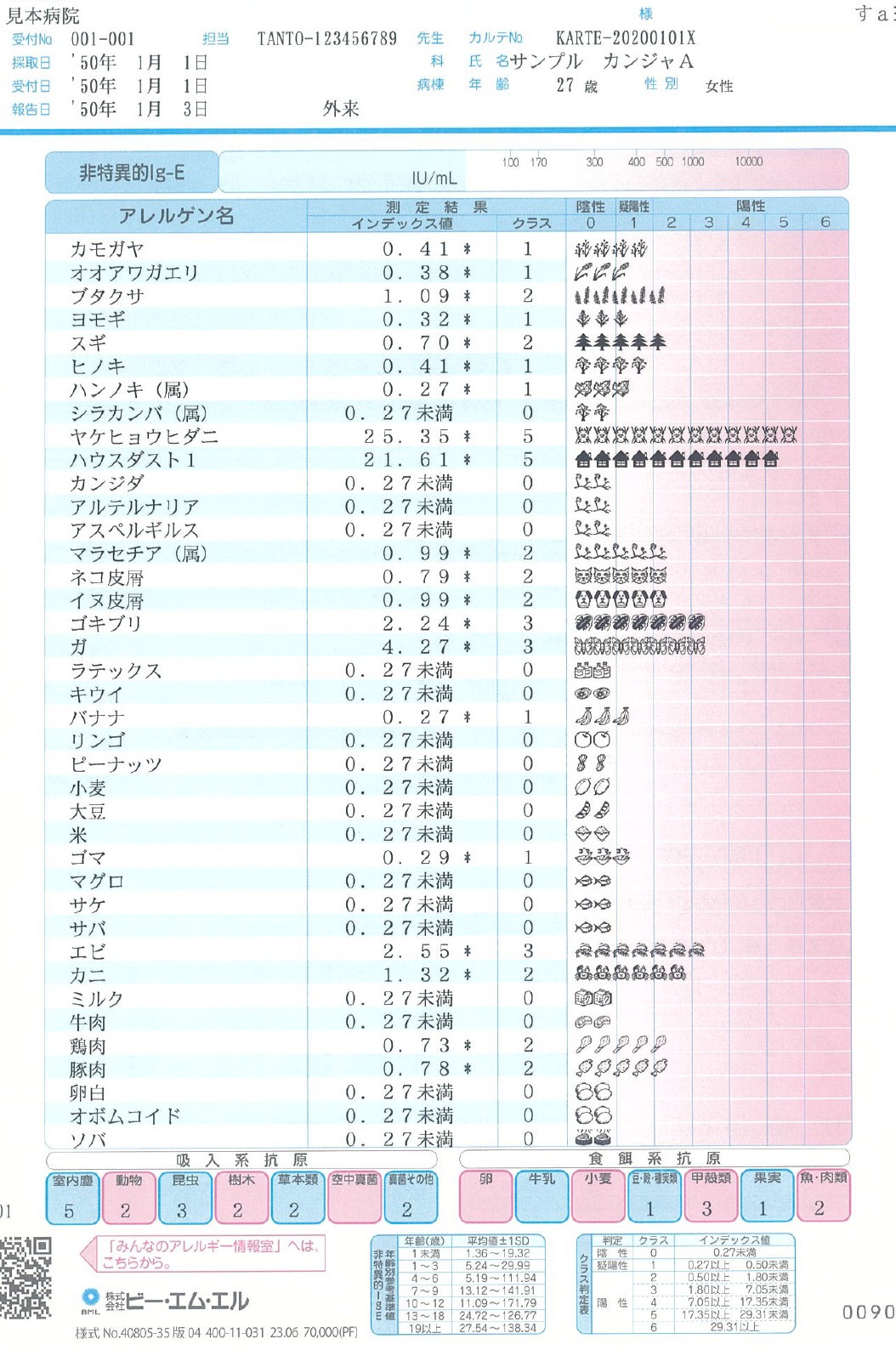 検査としてはまず非特異的IgE検査を行い170以上の高値なら→次に特異的IgE抗体検査を行います。