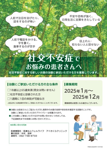 やっと暑い夏が終わり 過ごしやすい季節になりましたね 秋は行楽の季節ですが、実は社交不安障害(SAD)の患者さんにとっては、症状が悪化しやすい「危険な季節」であることをご存知でしょうか。1. イベント増加による「回避行動の拡大」 夏休みが明け、学校や職場ではプレゼン、会議、歓送迎会、文化祭、町内会の行事など人...